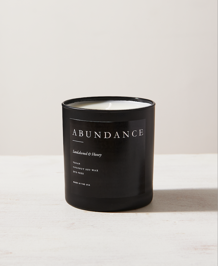 Sandalwood & honey scented soy coconut candle in 11oz black glass tumbler.