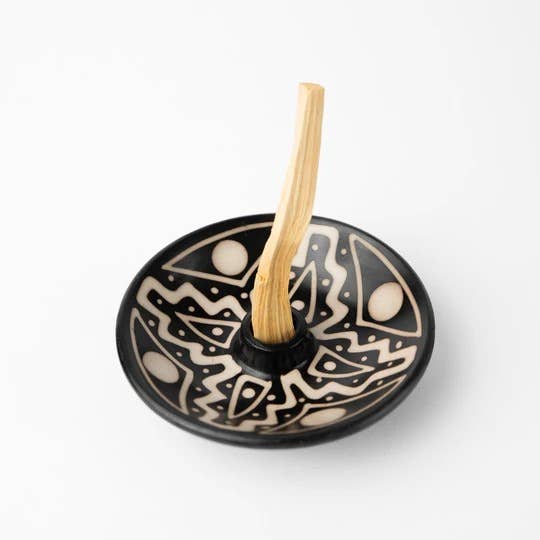 Originating from chulucanas, a city in northern Peru that’s renowned for its pottery, this Palo Santo holder is exquisitely crafted and uniquely designed. This beautiful Palo Santo holder is handmade by master artisan Luis H. Sandoval and his team of artisans to provide you with an authentic and meaningful experience. Holder measures 5” x 5”. It will hold most standard-sized palo santo sticks that have a diameter of up to 0.5 Inches and a length of 4-6 inches. Includes a cotton drawstring bag for safe storage and 5 sticks of palo santo incense. Available in a variety of colors.