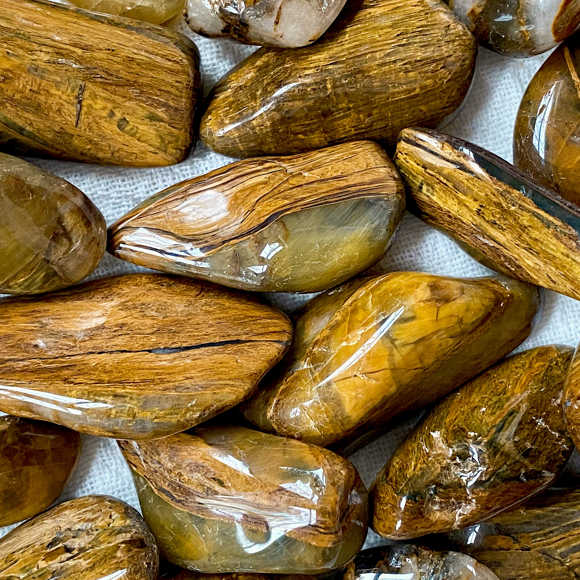Nellite, also known as Lionskin, is a captivating gemstone that exudes the powerful energies of strength and courage, reminiscent of the majestic lion's mane. Its golden hues, interspersed with shimmering bands of brown and red, evoke the regal beauty and fierce determination of the noble lion. Mined from regions such as South Africa and Namibia, Nellite is revered for its ability to ignite the inner fire of courage, instill confidence, and embolden the spirit to overcome obstacles.