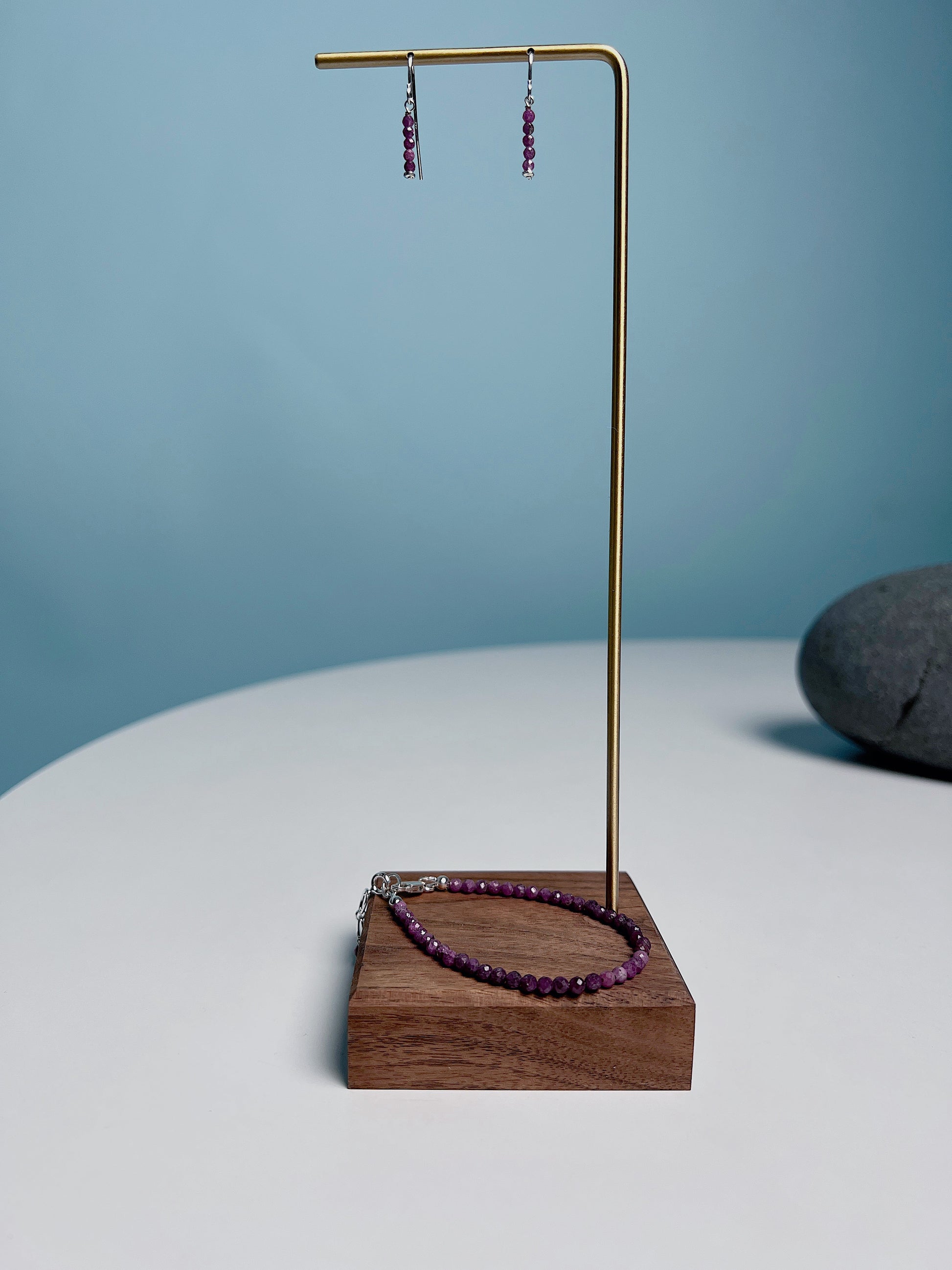 Bracelet and Earrings Origin: This exquisite Ruby bracelet and earrings are meticulously crafted in Mexico using high-quality Raw Ruby set in 925 Sterling Silver. The pieces showcase the natural beauty and metaphysical properties of Raw Ruby, creating a wearable form that exudes elegance and strength.