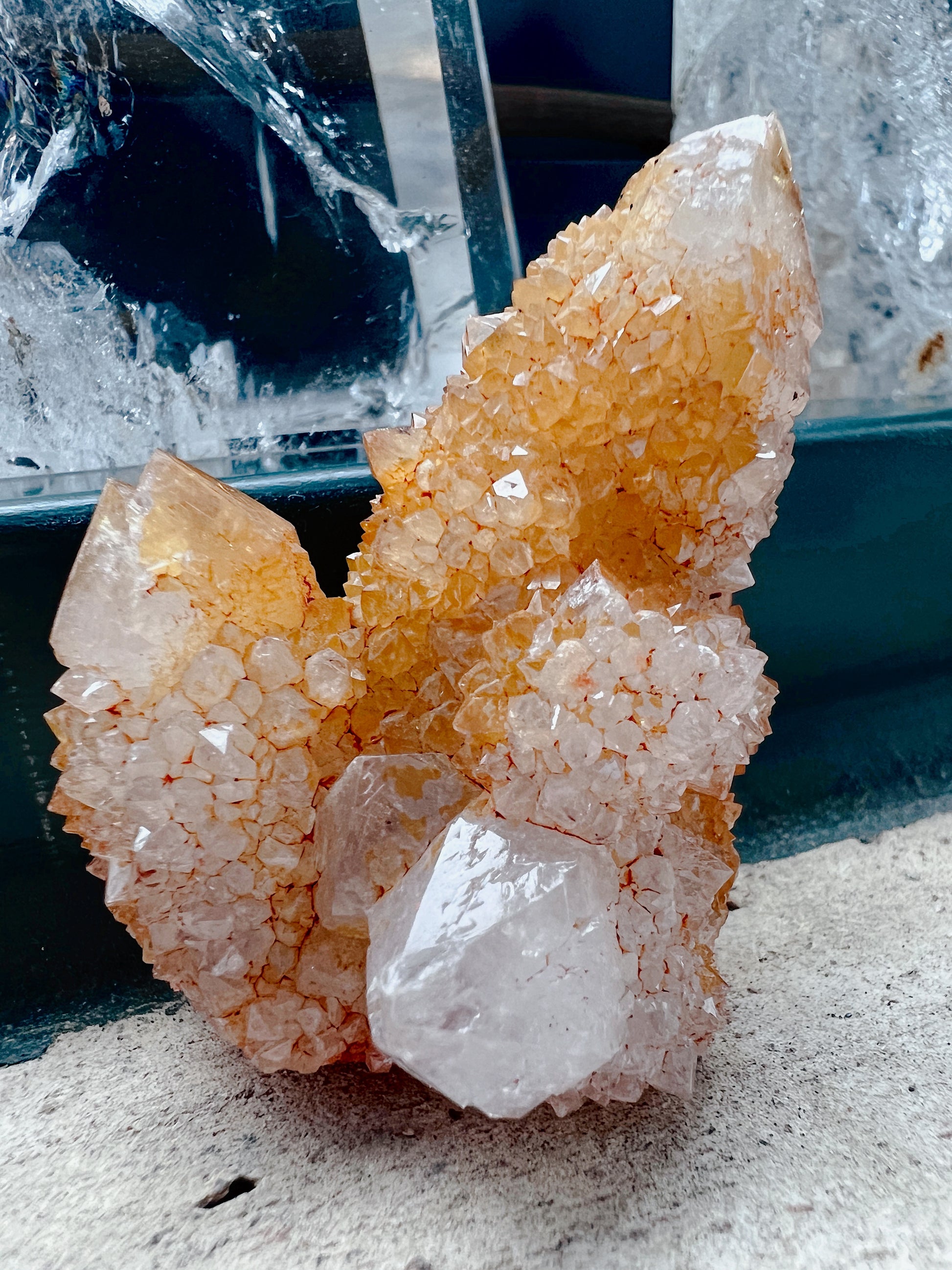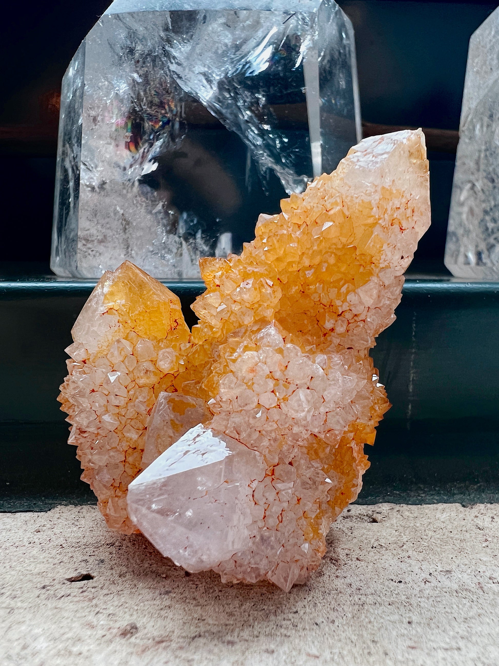 Each piece of Spirit Quartz is carefully handpicked and ethically sourced from the mines of South Africa. Its unique structure consists of a central point surrounded by smaller crystals, creating a beautiful and harmonious energy.