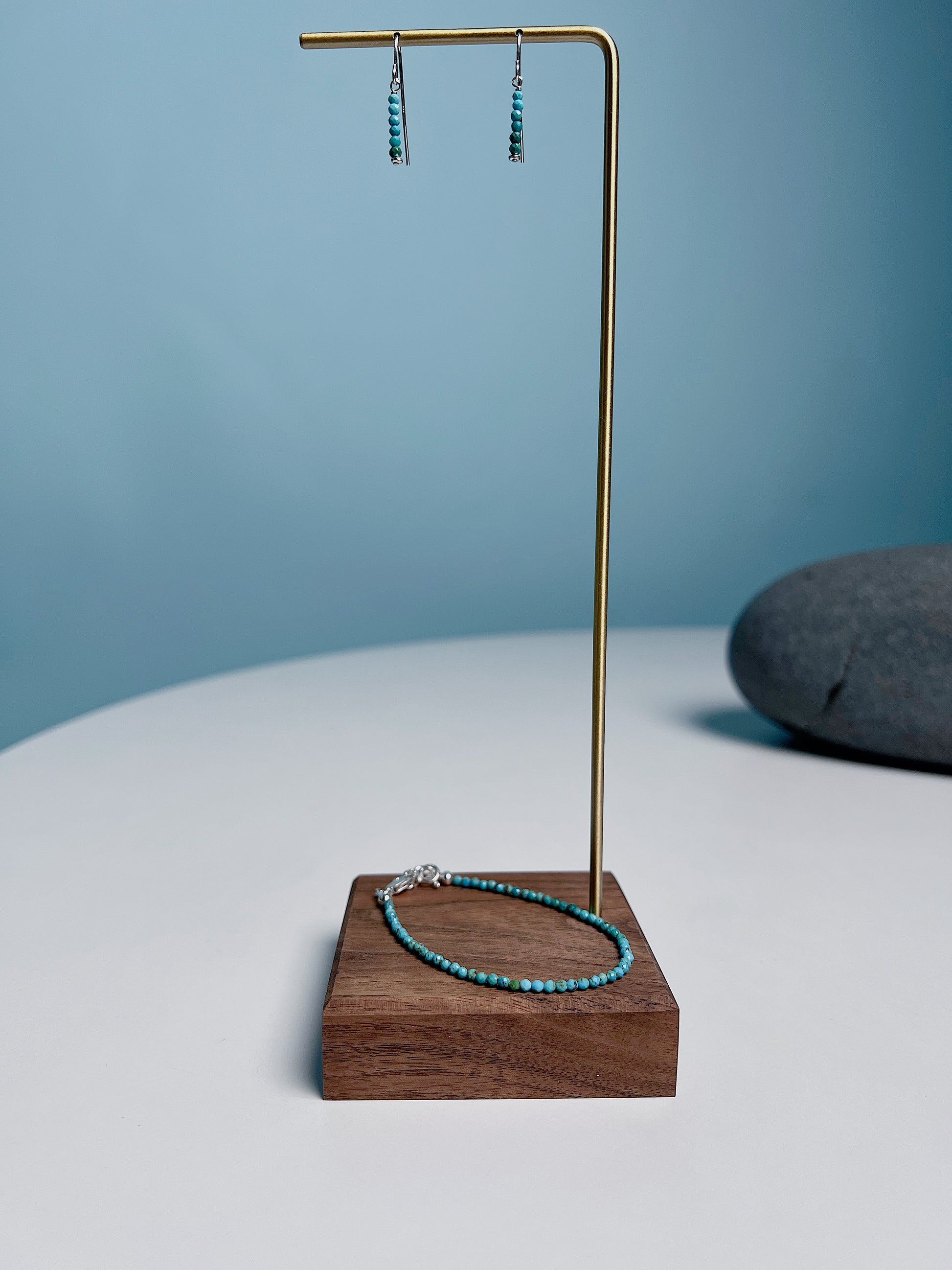 Bracelet and Earrings Origin: This exquisite Turquoise bracelet and earrings are meticulously crafted in Mexico using high-quality Raw Turquoise set in 925 Sterling Silver. The pieces showcase the natural beauty and metaphysical properties of Raw Turquoise, creating a wearable form that exudes serenity and empowered communication.